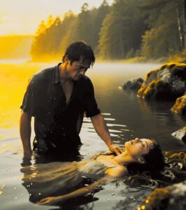 Выбравшись на берег, он рухнул рядом и сразу принялся действовать: выжал воду, надавил на грудь, вдохнул в губы жизни. Через мгновение из девушки вырвался судорожный кашель — мутная вода потекла изо рта, плечи вздрогнули, дыхание стало частым, слабым, но живым.