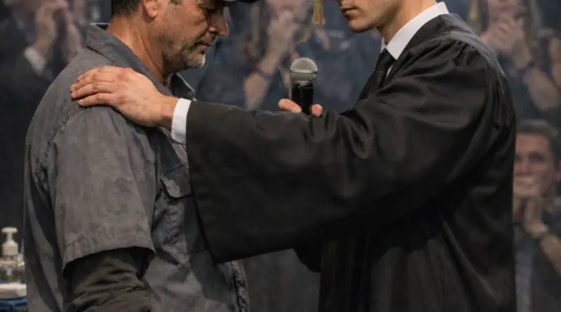 Блестящий, но высокомерный выпускник неожиданно прерывает свою выпускную речь, чтобы вызвать на сцену уборщика — и все думают, что он собирается его унизить.