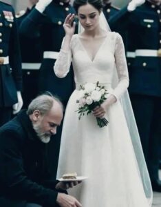 В день торжества Аня, сияющая в лёгком платье, держала отца под руку, готовясь выйти к алтарю, когда вдруг из толпы донёсся странный шёпот