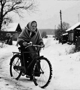 Наутро она, как всегда, встала с первыми лучами солнца, но этот день был особенным. Позавтракав, тщательно завязала платок, надела старую, но чистую кофту и подошла к своему новому другу. Сначала робко, потом увереннее, она вывела велосипед за калитку и медленно поехала по просёлочной дороге. Колёса тихо шуршали по утренней пыли, а сердце стучало радостно, как в детстве.