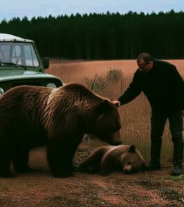 — Кульминация: момент, когда медведица и герой действуют синхронно — он отпугивает угрозу, она защищает детёныша.