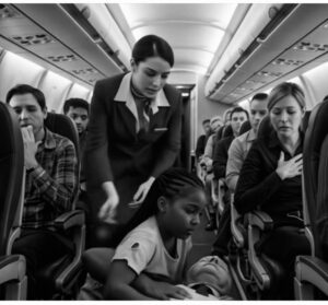 На борту рейса Атланта — Нью-Йорк всё казалось обыденным. Люди листали ленты телефонов, кто-то заказывал кофе, кто-то уже задремал под тихий гул двигателей. В самом конце салона, у окна, сидела худенькая девочка с тёмной кожей и большими печальными глазами. Её звали Амара Джонсон, ей было всего двенадцать. На коленях она держала старый рюкзак с выцветшими швами, будто боялась, что кто-то отнимет у неё последнее. Кроссовки были разодраны, джинсы перетёрты, но в её лице было что-то гордое и упрямое. Она летела одна — после похорон матери, направляясь в Бруклин к тёте, которую почти не знала.