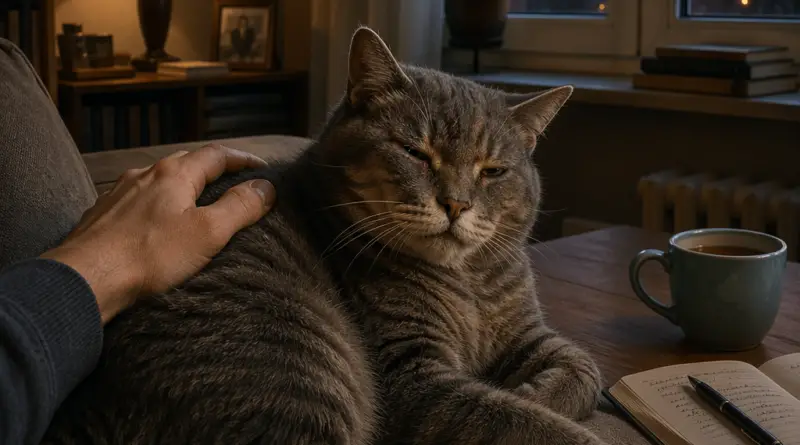 Первые дни он словно ждал возвращения — устроился у двери, ночью всматривался в темноту коридора. Но на шестой день подошёл ко мне, запрыгнул на диван и тяжело улёгся у ног, как старая вещь с памятью.