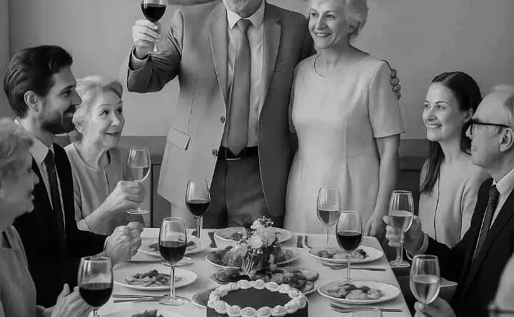 На улице стояли припаркованные машины гостей, пахло мокрым асфальтом и срезанными цветами. В руках она всё ещё держала салфетку, смятую в комок — как символ прожитых лет.