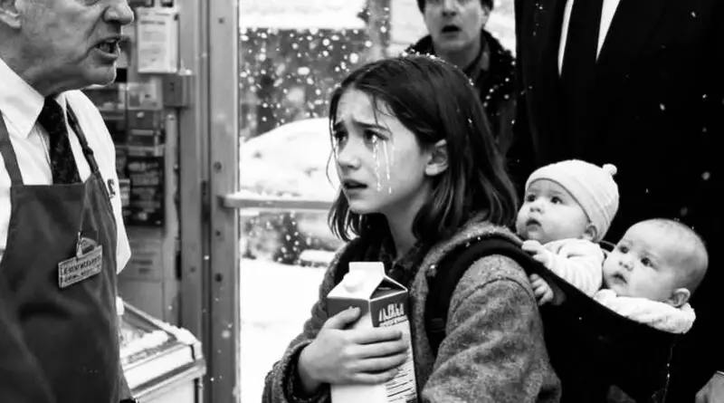 Маленькая девочка стояла на холодной тротуарной плитке, сжимая в руках рваную сумку. Из магазина доносился глухой шум скандала, но ей было всё равно. Её звали Эмили Картер, и всего один поступок — кража коробки молока — превратил её в преступницу в глазах взрослых. А на самом деле она была просто голодным ребёнком, пытавшимся спасти младших: шестилетнего Лиама и четырёхлетнюю Софи, чьи маленькие желудки оставались пустыми уже больше суток.