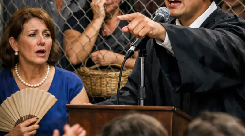 Когда они приблизились к входу в актовый зал, дорогу им внезапно преградила строгая координатор церемонии — миссис Вильяфлор. Она внимательно оглядела их с головы до ног, и её взгляд стал холодным.