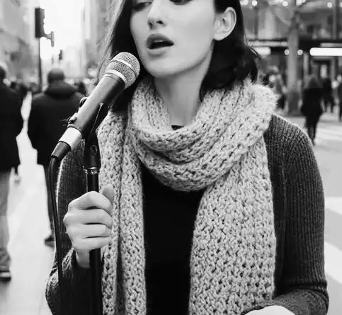Сердце сжалось, дыхание сбилось. Я огляделся — и увидел девушку. Молодую, стройную, с тёмными волосами, она стояла под уличным фонарём и пела, закрыв глаза, словно всё вокруг перестало существовать.