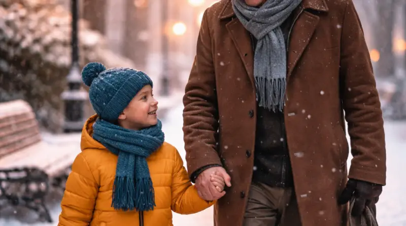 Снег снова лёг на улицы города. Андрей Васильевич шёл по знакомому парку — не один, а с внуком. Мальчик держал его за руку и что-то оживлённо рассказывал.