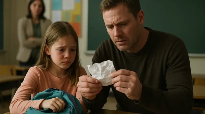 — Она писала это сегодня на уроке. Мы проводили упражнение: „Что меня тревожит“. Дети рисовали, писали… говорили. Ваша дочь не стала говорить вслух. Но когда я подошла к ней, она прятала этот листок. И когда я спросила, почему она так расстроена, она заплакала. Я сказала фразу про папу… чтобы она задумалась, почему считает, будто вы можете её не любить. Не затем, чтобы ранить.