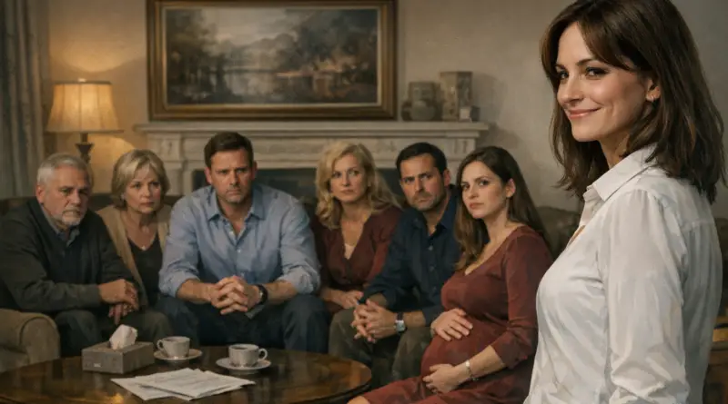 Шесть человек расположились в моей гостиной: мой муж, его родители, сестра, брат и женщина, носившая его ребёнка. Они заняли пространство, подаренное мне моей матерью, и смотрели на меня так, будто я — всего лишь препятствие, которое нужно устранить.