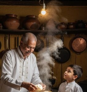 В одно утро, когда солнце только начинало окрашивать небо золотом, Шарма в последний раз открыл двери булочной. Он знал — силы оставляют его. Но упрямство не позволило остаться дома. Он разжёг печь, замесил тесто и, опираясь на стол, выложил на противень последние булочки. Аромат разнёсся по улице, как и всегда, привлекая прохожих.