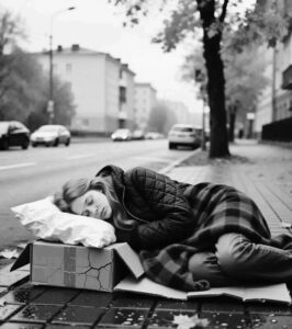 Дорога заняла больше часа. Два автобуса, тряские и продуваемые ветром, доставили её к подножию серых пятиэтажек, одинаковых, как солдаты в строю. Подъезд встретил её тяжёлым, затхлым воздухом, пропитанным пылью и одиночеством. Лифт молчал, и ей пришлось подниматься по лестнице, на которой лежали остатки чужой жизни: обрывки газет, билеты, потерянный детский носок.