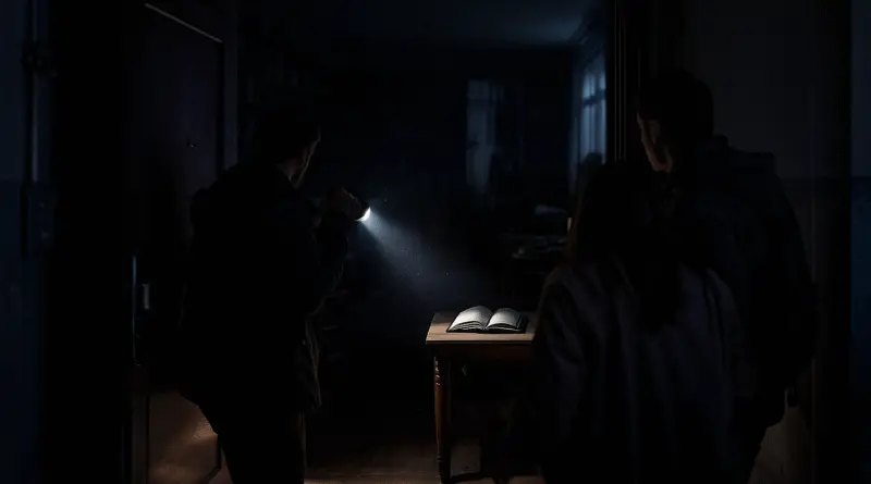 Он делал записи. У него был журнал. Мы видели его однажды. Там были даты, рисунки… и слова: «Оно рядом». «Оно за дверью». «Не открывать».