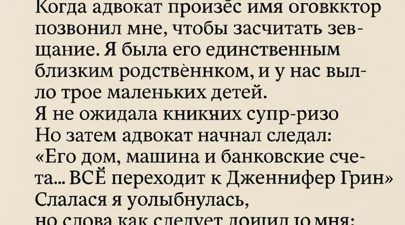 Когда адвокат произнёс имя «Дженнифер Грин», я невольно рассмеялась. Нервно, неестественно, так, как смеются люди, когда не понимают, что происходит.