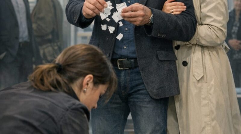 Рядом с ним стояла его любовница — Виктория. Кремовый плащ, уверенная осанка, холодная, торжествующая улыбка. Она держалась за его руку так, будто давно уже заняла моё место — в его жизни, в его доме, в его будущем. Люди вокруг старательно отводили глаза, но я чувствовала их внимание — липкое, неловкое. Дмитрий задержал обрывки билета в пальцах чуть дольше, чем нужно, словно наслаждаясь моментом, а затем уронил их к моим ногам.